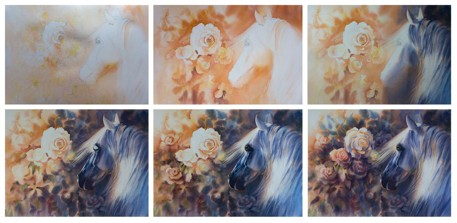 Watercolor is my main medium, but I also work with oil, acrylic, and sometimes pastels — a technique often called dry painting.